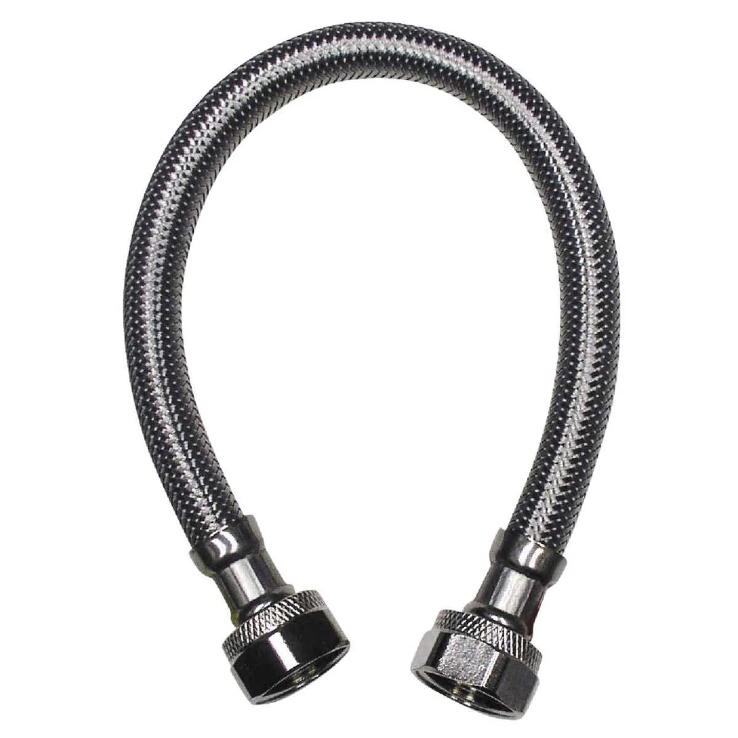 - Durable braided stainless steel wrapped around reinforced braided PVC with brass hex connector nuts