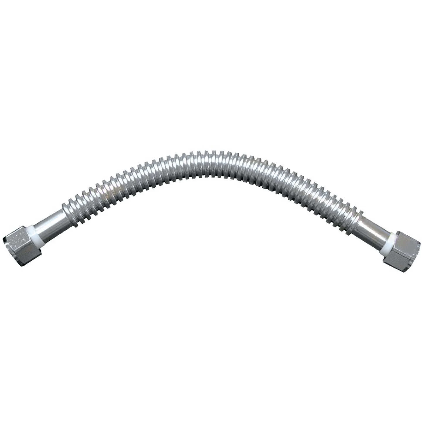 1 In. ID (inside diameter) 1 In. F.I.P. x 1 In. F.I.P. x 18 In. water heater connector. Braided stainless steel wrapped around reinforced braided PVC with brass hex connector nuts. Approved for residential, commercial, and industrial applications for water supply connections to fixtures. Core is Virgin PVC with polyester yarn braiding over-braided with stainless steel 304 for strength and durability. Chrome plated brass nuts and washers for a dependable hand-tight seal. Max Temp 180F (degrees Fahrenheit); Max Pressure: 125 psi ( pounds per square inch). IAPMO (International Association of Plumbing and Mechanical Officials) listed.
